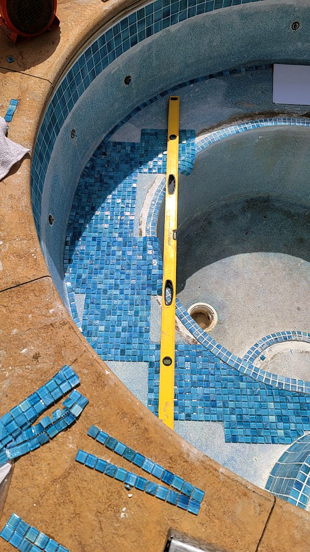 Expert removal and installation of waterline tile, coping stones, and cantilever edges.